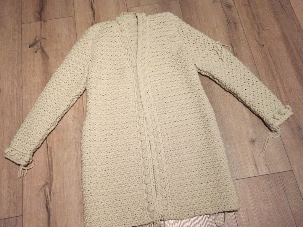 Als het je bedoeling was om een mooi lang warm vest te maken, dan ben je nu eigenlijk klaar. Nog wel even de draadjes netjes wegwerken en eventueel wat mooie sier knopen erop zetten.
