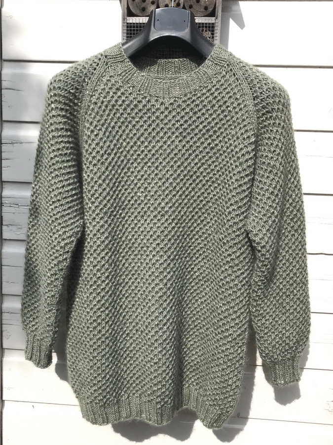 Deze trui heb ik op verzoek gebreid voor mijn 86 jarige buurvrouw omdat ze zelf niet meer goed kan zien en gek is op hand gebreide truien. Ze is er super blij mee. Een trendy kleur, een glimmertje erin en extra lang! Deze trui is maar liefst 68 cm lang