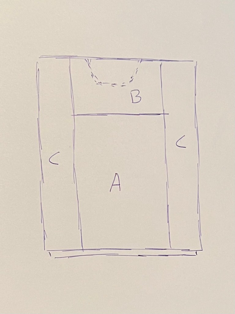- Haak nu aan de zijkanten deel C net zoals bij het rugpand