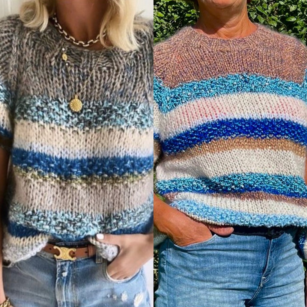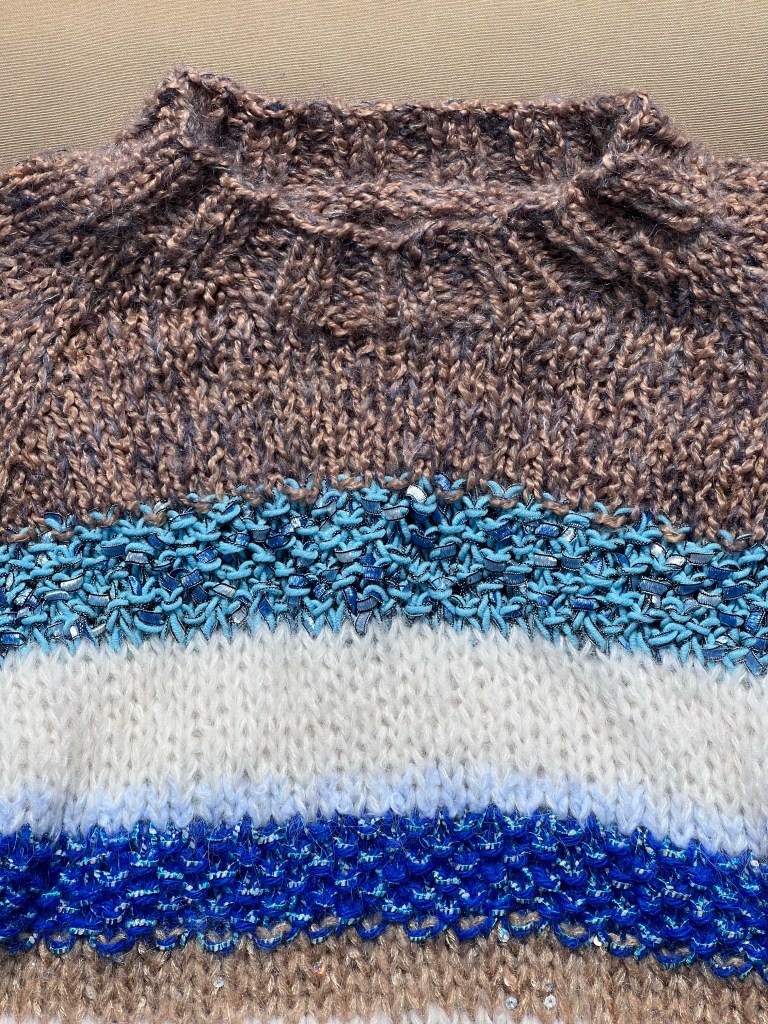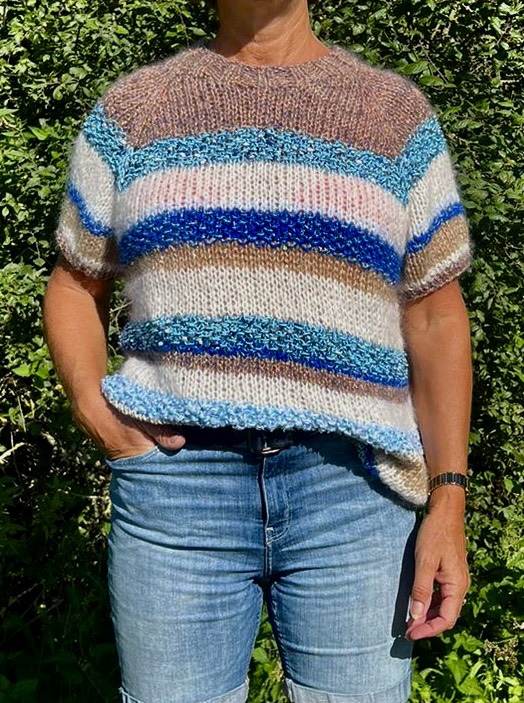 Topdown gebreid truitje van diverse materialen met hier en daar een sparkel Wordt gratis verstuurd binnen Nederland (Indien retour verzendkosten voor eigen rekening!) Kijk voor alle foto’s bij het patroon (link staat onder de betaalknop)