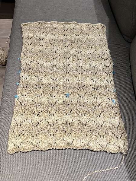 LET OP: Houd rekening met het patroon, blijf de steken op de juiste plek boven elkaar breien. Indien er geen ruimte is voor een omslag aan het begin en einde van de toer, dan wordt er ook in die toer niet samen gebreid en overgehaald aan het begin en einde! Houd je steken aantal dus in de gaten!