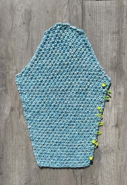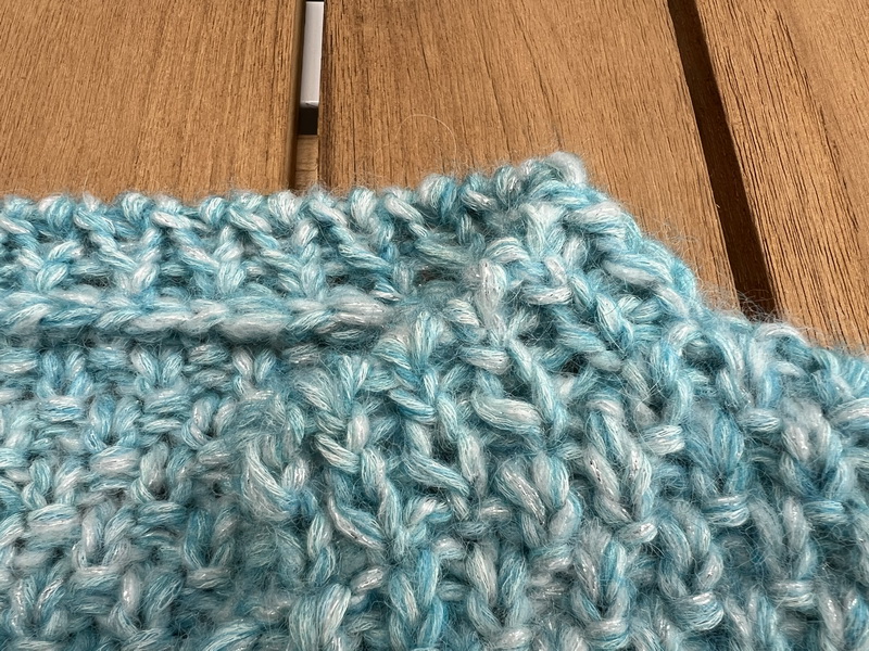 Toer 2: 1 KST, de steken breien zoals ze zich voordoen. Eindig met 1 KST