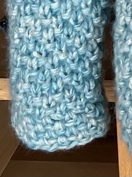 Als je wilt kun je nog een klein boordje aan de mouw haken. Ik heb dit gedaan met haaknaald 6 en heb 4 toeren Losse/Vaste gehaakt.