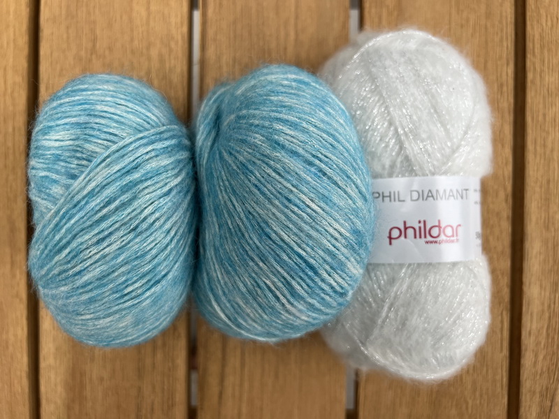 Materiaal: 6 bollen Puno Due kleur 20 en 3 bollen Phildar Diamant kleur Cristal