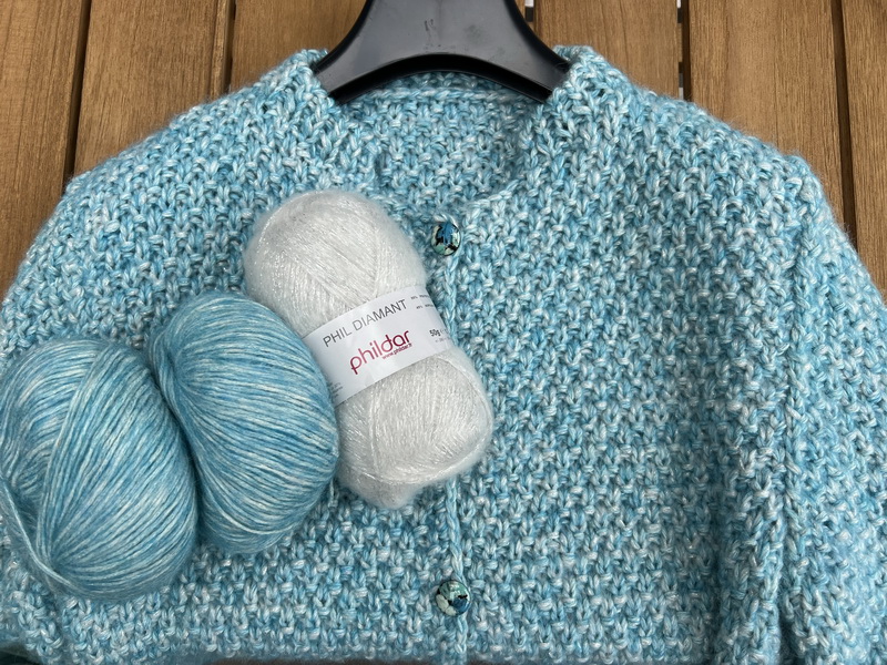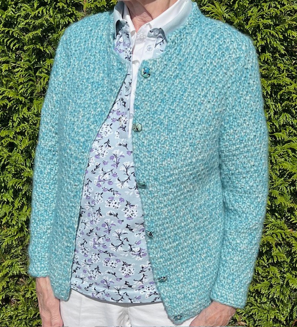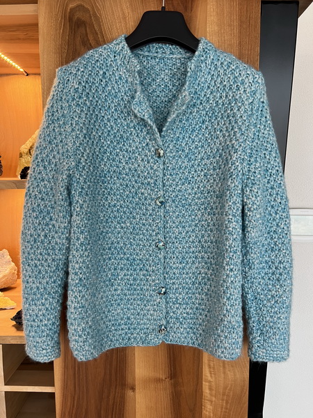 Hier is een Aqua versie van zo’n kort gebreid 🧶 jasje.