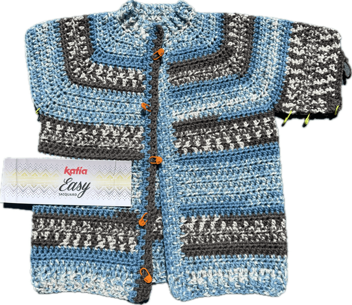 Dit stoere kindervest is zomaar ontstaan š Ik had een grote bol Katia Easy jaquard liggen met een bijbehorend breipatroon. Wanneer je dat patroon aanhoud zal dan vanzelf het jaquard patroon tevoorschijn komen. š§Hmm….. ik weet nog wel dat ik eraan begonnen ben, maar om de een of andere reden vond ik het toch niks. Dus …. uitgehaald en een top-down haak iets geprobeerd met dit super leuke vest als resultaat. š¤·āāļø Helaas had ik aan 1 bol niet genoeg, maar gelukkig heb ik er met Google samen nog eentje kunnen vinden.