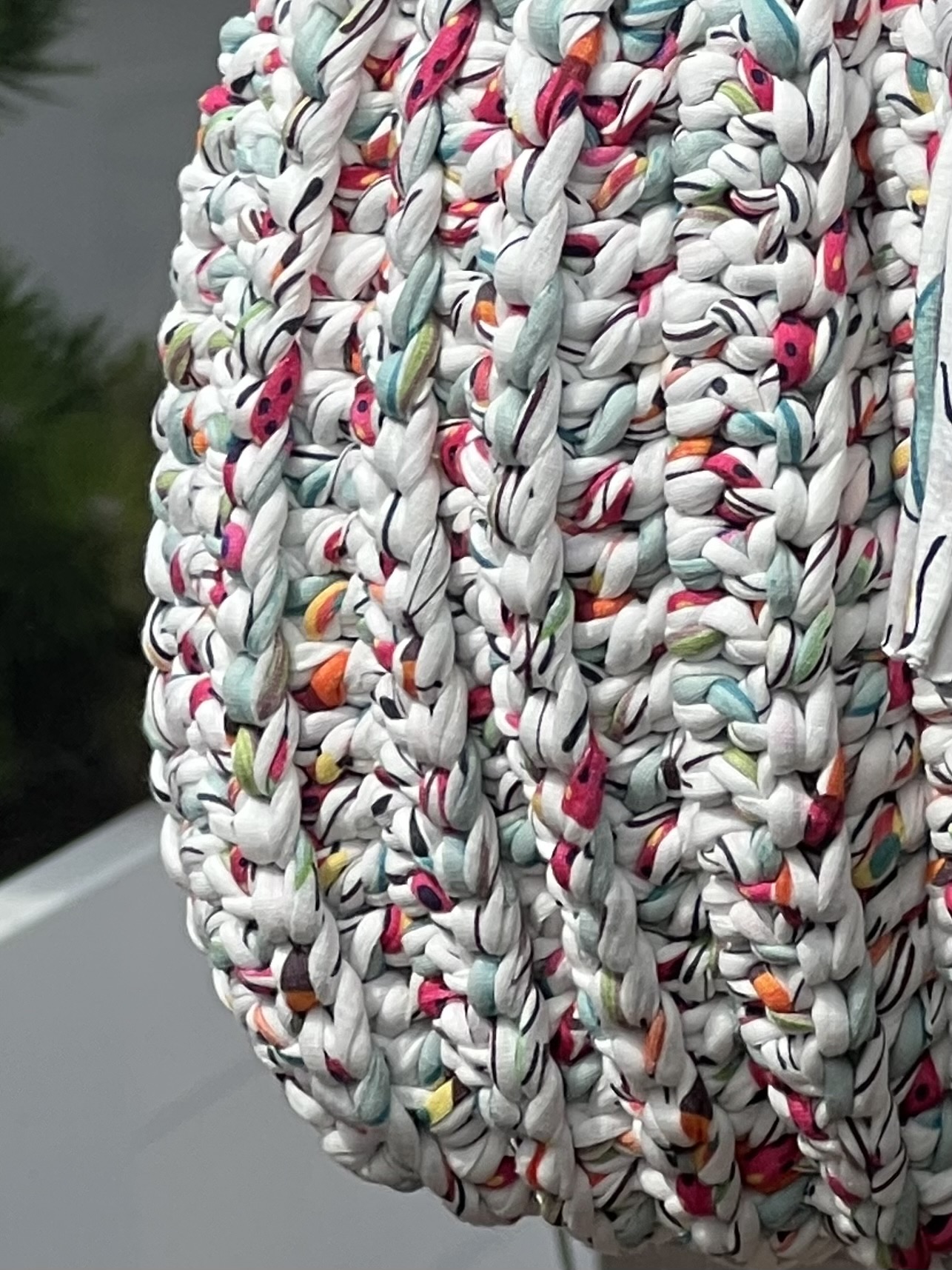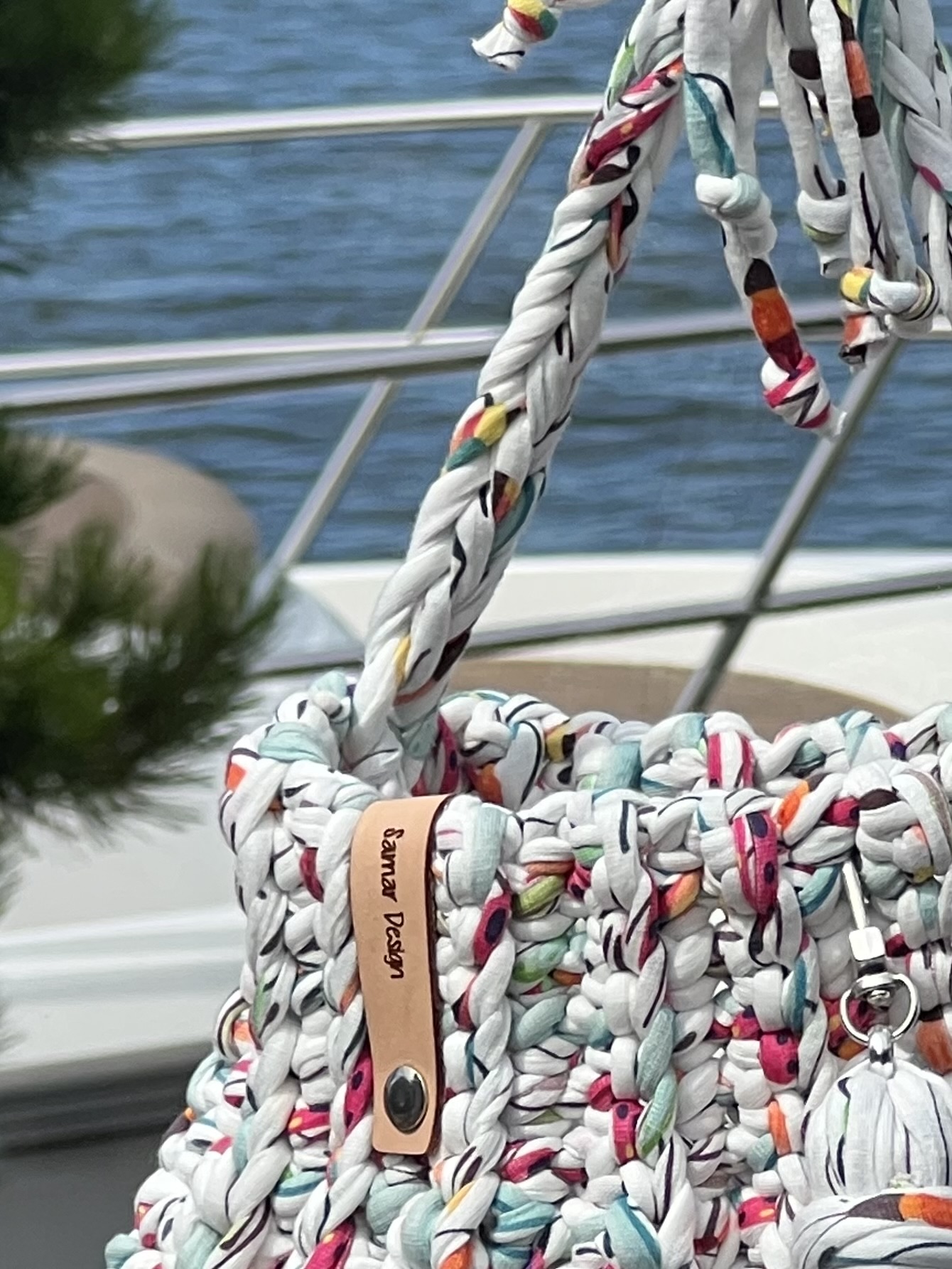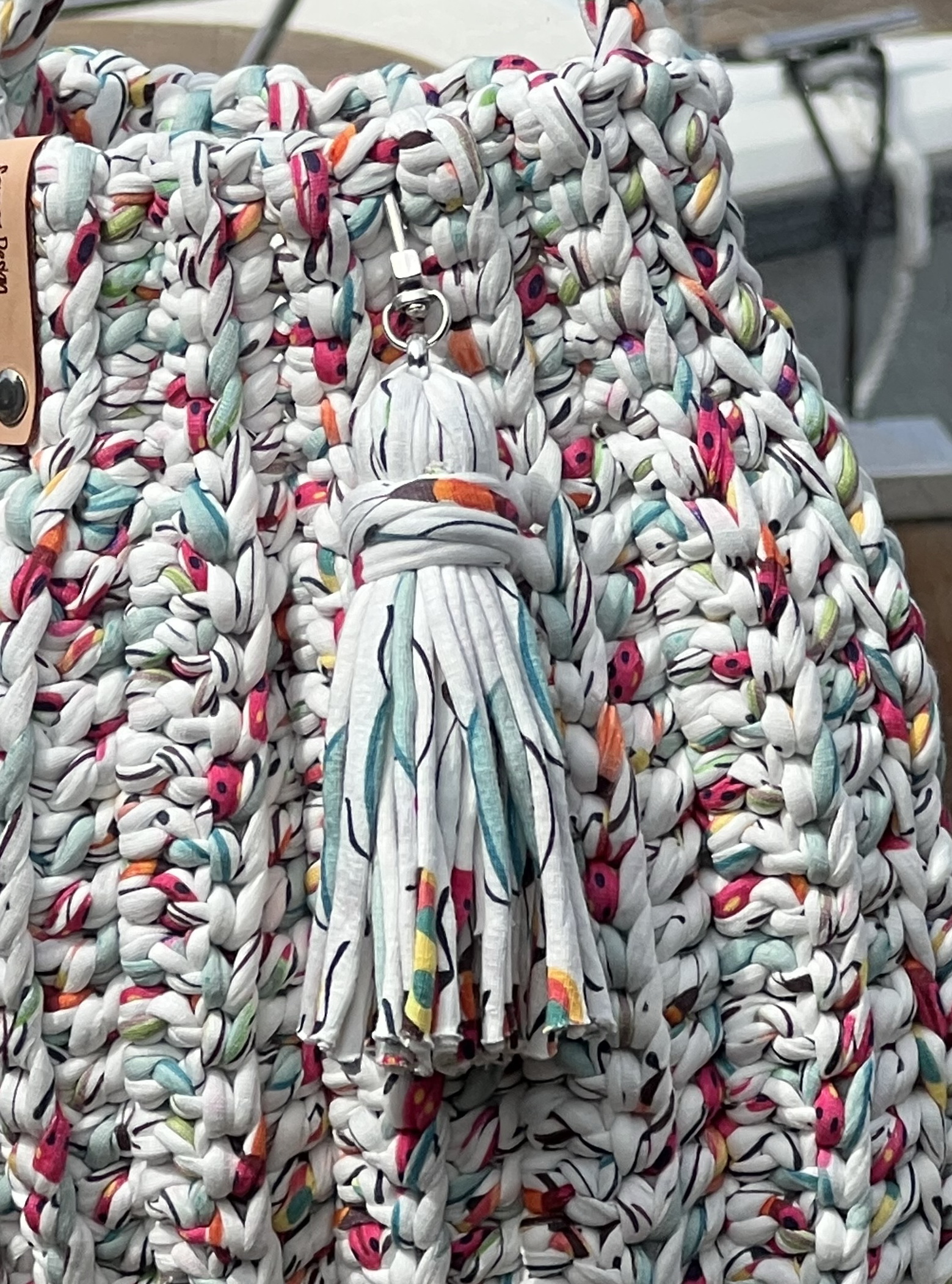 Handgemaakte Gehaakte Tas – Exclusieve Pompoen vorm in een vrolijke multicolor Ontdek de perfecte mix van handwerk, luxe en originaliteit met deze schitterende hand gehaakte tas. Het stevige T-shirt garen zorgt voor een vormvaste tas, terwijl de unieke pompoen vorm direct alle aandacht trekt. Bijzondere details: Voorzien van een grote bijpassende tassel – een echte eyecatcher Stevige, zilver kleurige DQ metalen bevestigingen voor een luxe afwerking Inclusief trekkoord binnentas om je spullen veilig op te bergen Handgemaakt met liefde – elk stuk is uniek Afmetingen: 29 x 29 cm Of je nu naar een zomerse lunch of een chique evenement gaat, deze tas tilt je outfit naar een hoger niveau. 🌊 Stijlvol, exclusief en met de hand gemaakt – een tas om verliefd op te worden! 👉 Bestel vandaag nog jouw unieke exemplaar en draag een kunstwerk aan je arm.