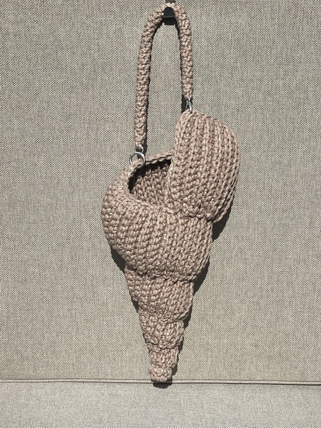 Ontdek de perfecte mix van handwerk, luxe en originaliteit met deze schitterende hand gehaakte tas. Het stevige T-shirt garen zorgt voor een vormvaste tas, terwijl de unieke schelpvorm direct alle aandacht trekt.