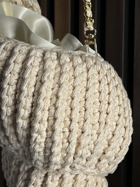 Ontdek de perfecte mix van handwerk, luxe en originaliteit met deze schitterende hand gehaakte tas. Het stevige T-shirt garen zorgt voor een vormvaste tas, terwijl de unieke schelpvorm direct alle aandacht trekt.